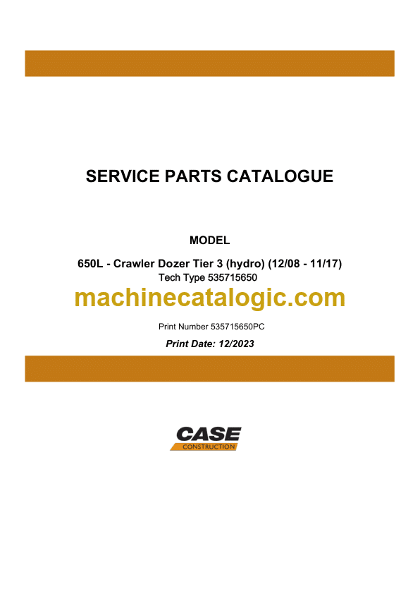 Case 650L Tier 3 Hydro Crawler Dozer Service Parts Catalogue