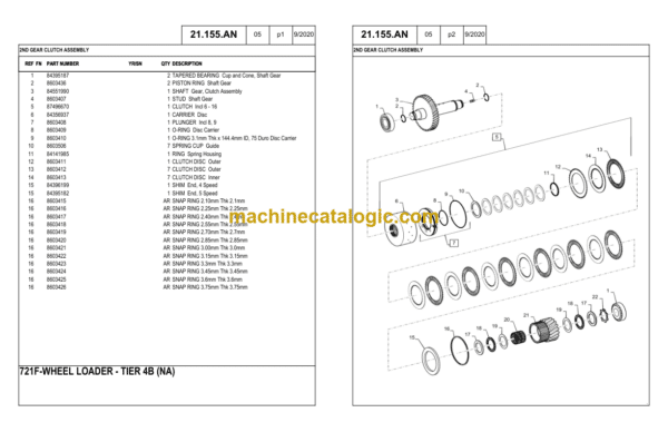 On a 721F Tier 4 loader that spends its life in quarries, feedlots, or snow work, this parts catalog is what I reach for when I need to identify exactly what’s bolted where. It lets you trace each system—DEF tank, transmission, axles—through exploded views so you can match what’s on the machine to the correct revision in the book. If a loader comes in with a cracked DEF tank bracket or a leaking transmission seal, I use this catalog to confirm the right bracket, seals, and hardware before ordering, so the machine isn’t stuck on the lift waiting for missed parts.