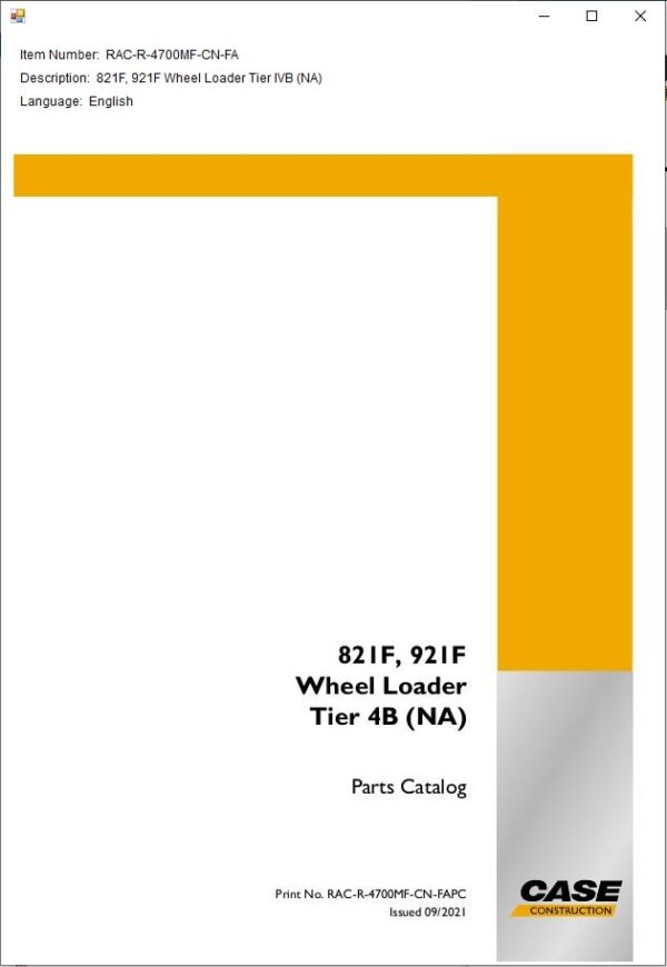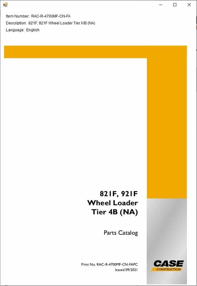 Model: 821F, 921F Tier 4B NA Wheel Loader