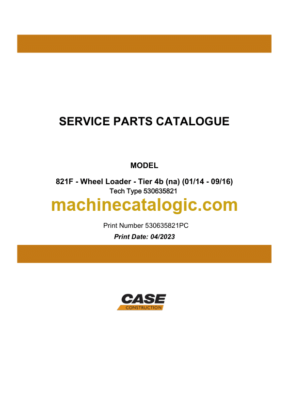 Case 821F Tier 4B Wheel Loader Service Parts Catalogue