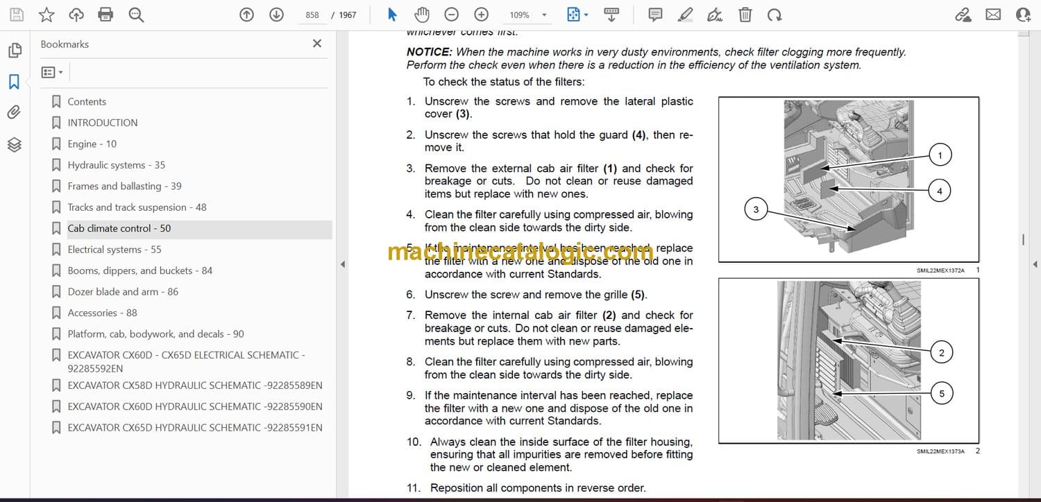 Case CX58D, CX60D, CX65D Mini Excavator Index: