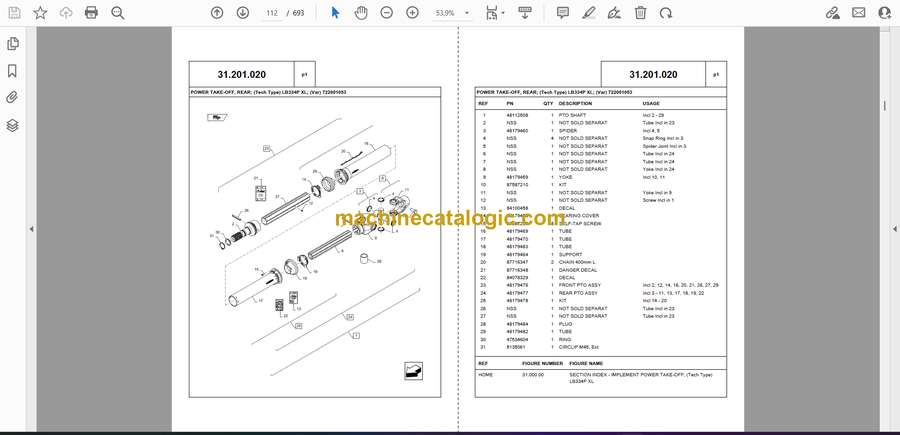 31 PICTORIAL INDEX – IMPLEMENT POWER TAKE OFF; (Tech Type) LB334P XL