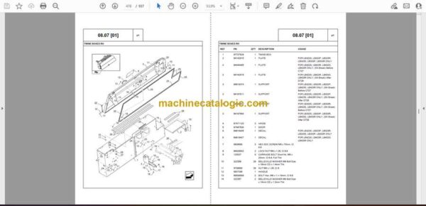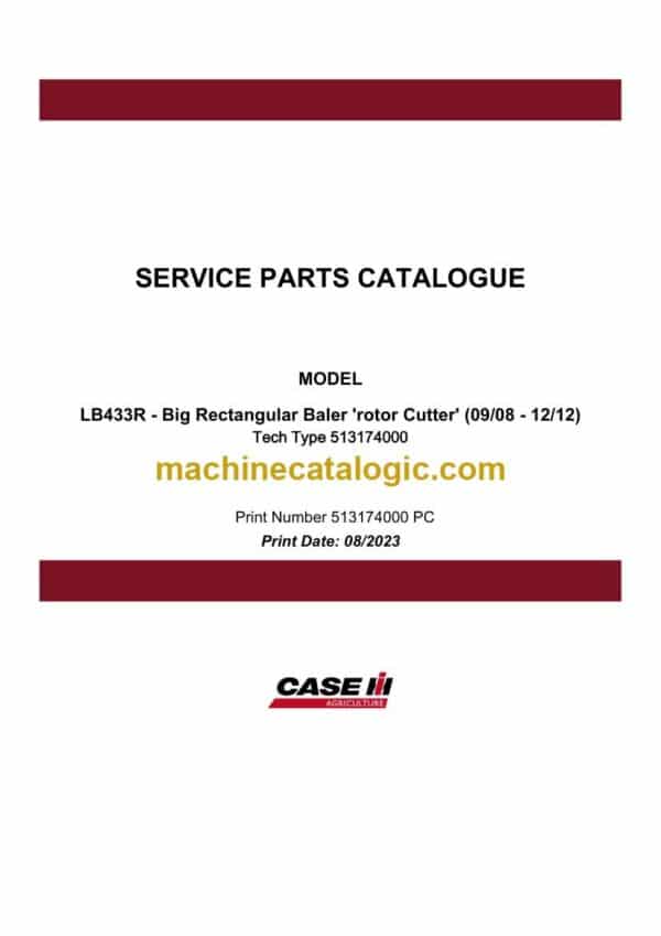 Out in hay and straw, this LB433R big square baler spends its life eating windrows and packing tight bales, often in dusty, long-hour conditions. This Service Parts Catalogue is what I’d pull up when I need to see how the rotor cutter and related assemblies are built up, piece by piece, so I can order exactly what’s needed. For example, if a knife carrier is damaged and a spacer or shim goes missing during teardown, this book lets me identify every small part and match it to the right Case number before reassembly.