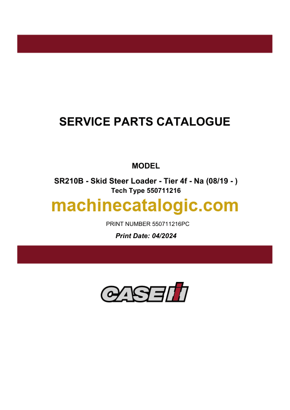 Case SR210B Tier 4F NA Skid Steer loader Service Parts Catalogue