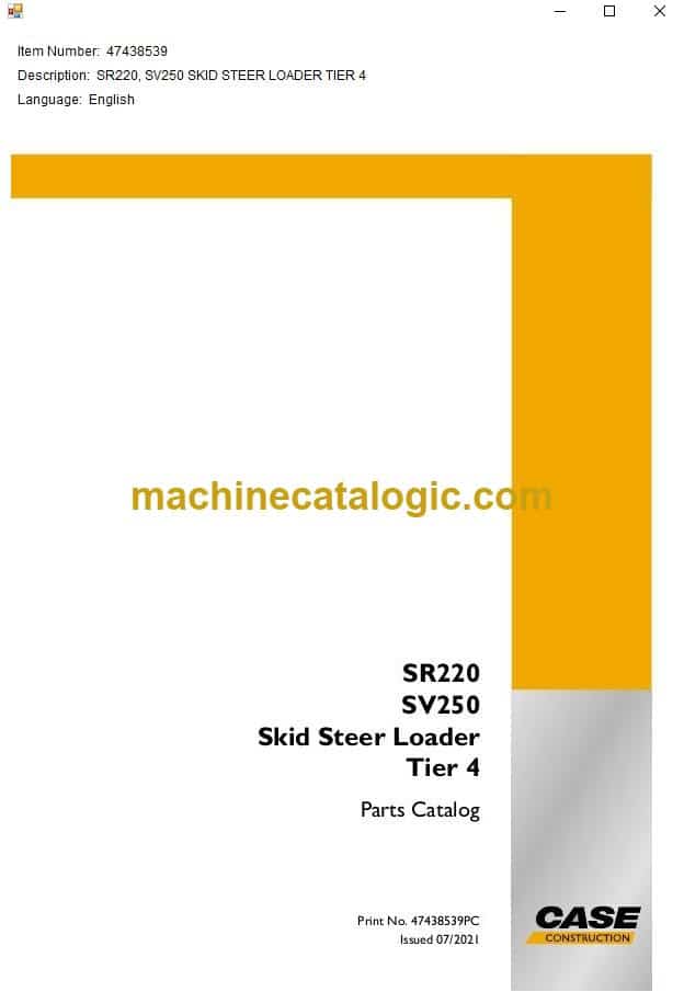 Model: SR220, SV250 Tier 4 Skid Steer Loader