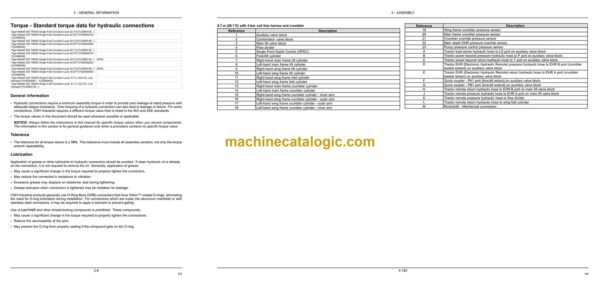 Torque – Standard torque data for hydraulic connections . . . . . . . . . . . . . . . . . . . . . . . . . . . . . . . . . . 2-8