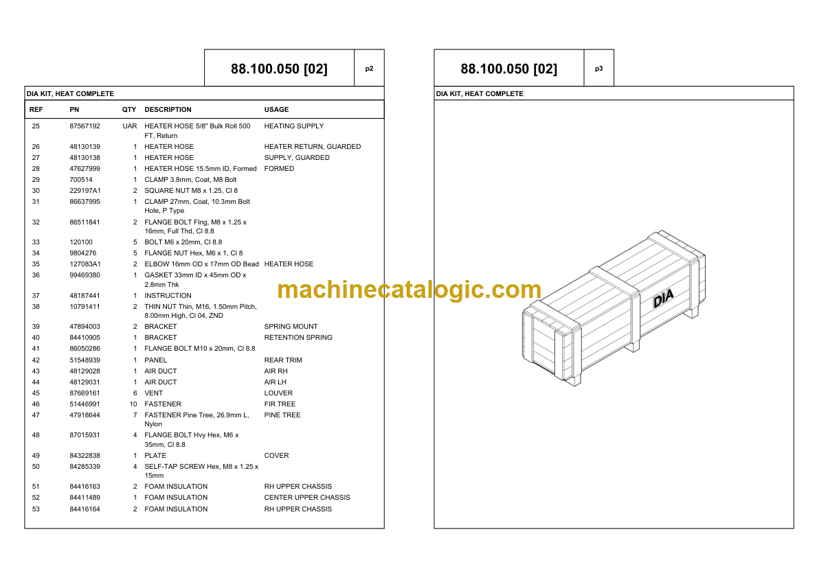 Always verify parts with the machine serial tag and follow all lockout and support procedures before inspecting or removing components.