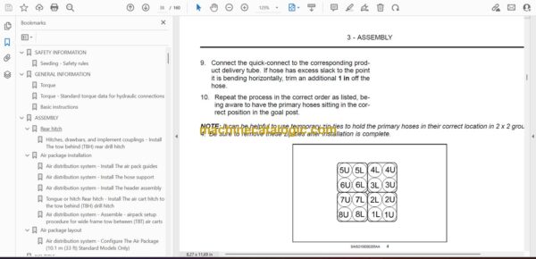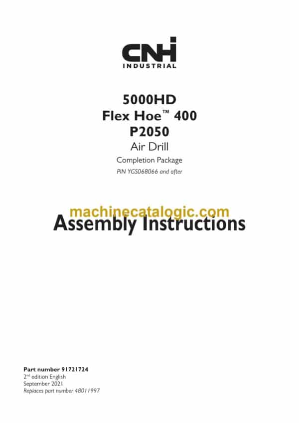 When you’re putting a CNH 5000HD Flex Hoe 400 or P2050 air drill together for broad-acre seeding, this assembly manual is what keeps everything lining up and working right in the field. These rigs run long hours in dusty, uneven ground, and if they’re not assembled and adjusted correctly, you’ll fight uneven seed placement, air leaks, and frame stress. I’d use this document to follow the correct order of build-up, verify hardware locations, and double-check hose routing. For example, if a tower isn’t feeding evenly across a boom, I’d come back to this manual to confirm how the manifolds, hoses, and openers were originally meant to be assembled and aligned.