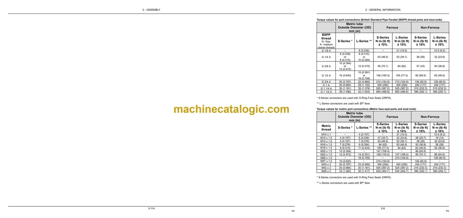 Torque – Standard torque data for hydraulic connections . . . . . . . . . . . . . . . . . . . . . . . . . . . . . . . . . . 2-6
