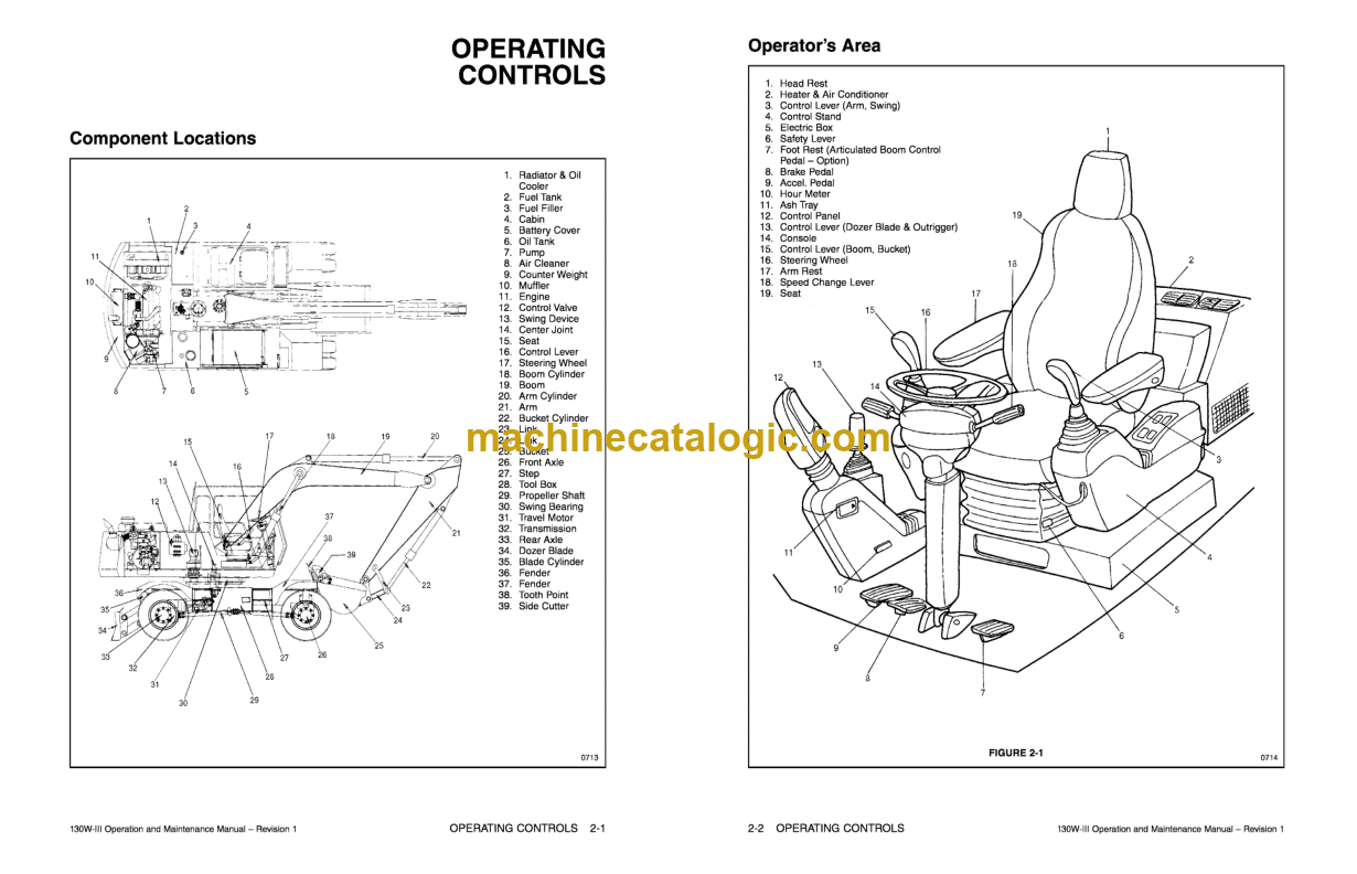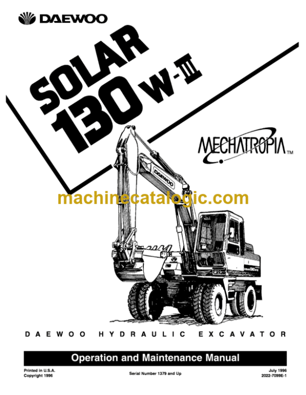 Solar 130W-III Excavator Rated Lift Capacity Tables