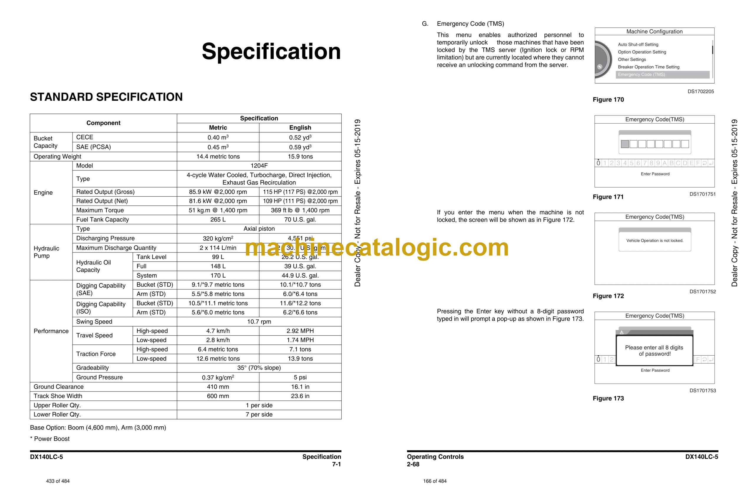 Doosan DX140LC-5 Excavator Operation and Maintenance Manual (Serial Number 1001 and Up)