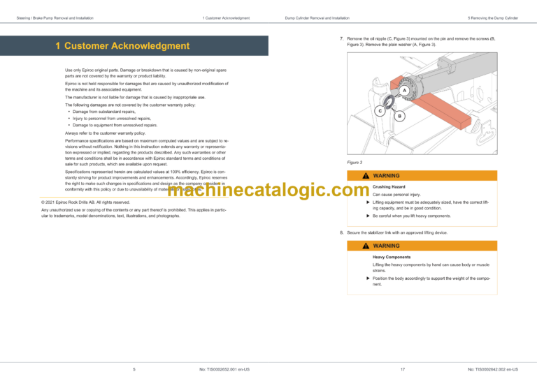 Epiroc Scooptram ST 3.5 Component Removal and Installation Instructions