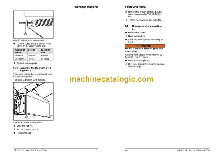 Fendt 313 TKC, 313 TRC Slicer Disc Mower Index: