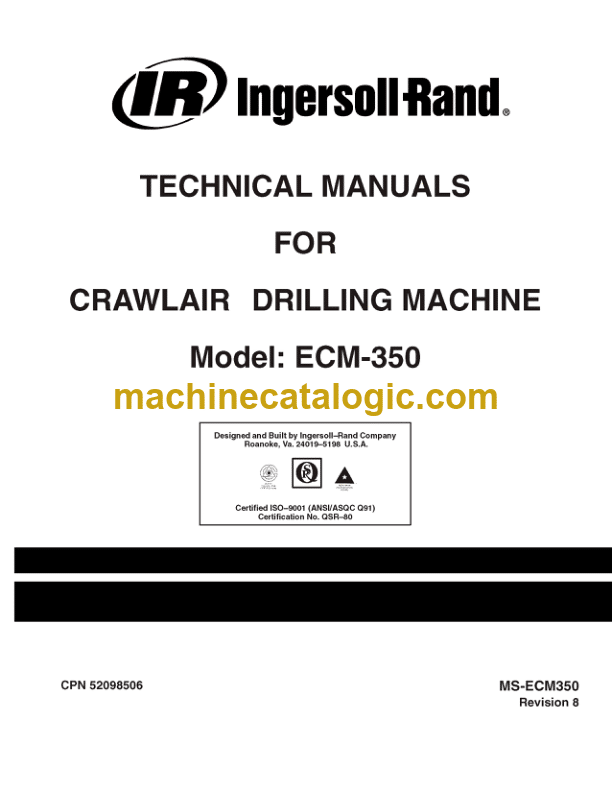 Ingersoll Rand ECM350 Crawler Drilling Machine Technical Manual (52098506)