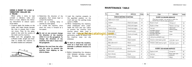 Komatsu JV40C, JV40CW-2, JV40CR, JV40RW-2 Vibratory Roller Index: