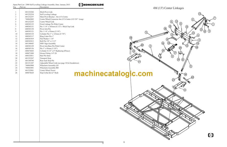 Kongskilde 2900HD Field Cultivator Spare Part List