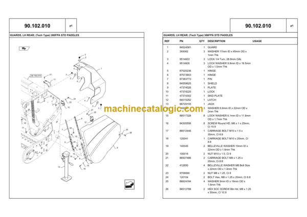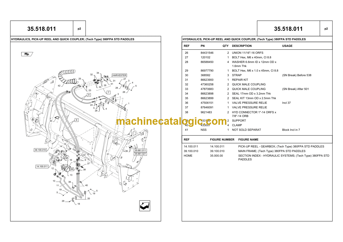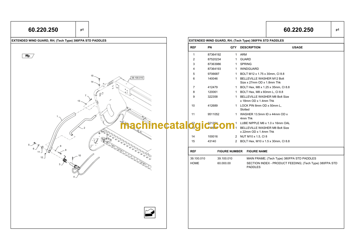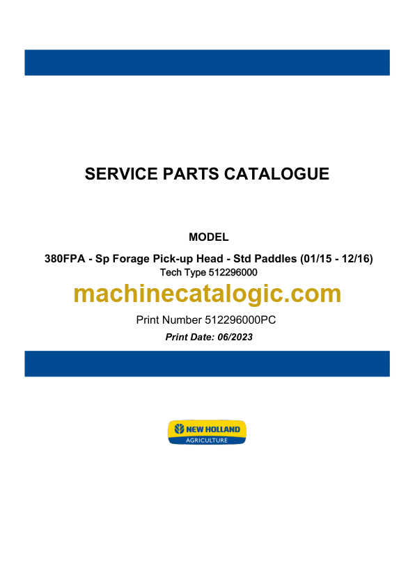New Holland 380FPA SP Forage Pick-up Head Service Parts Catalogue