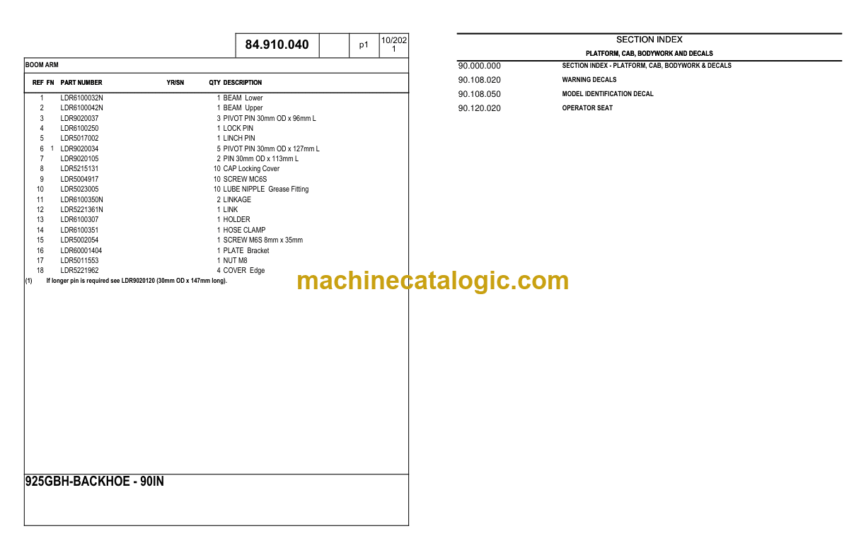 SECTION INDEX – PLATFORM, CAB, BODYWORK & DECALS
