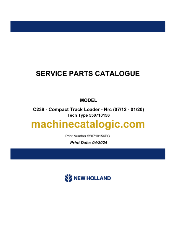 New Holland C238 Compact Track Loader Service Parts Catalogue