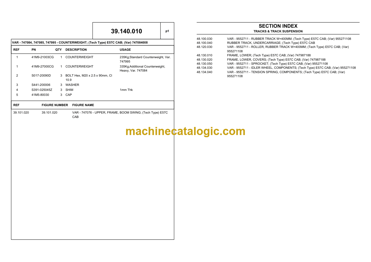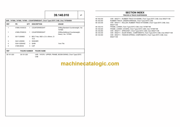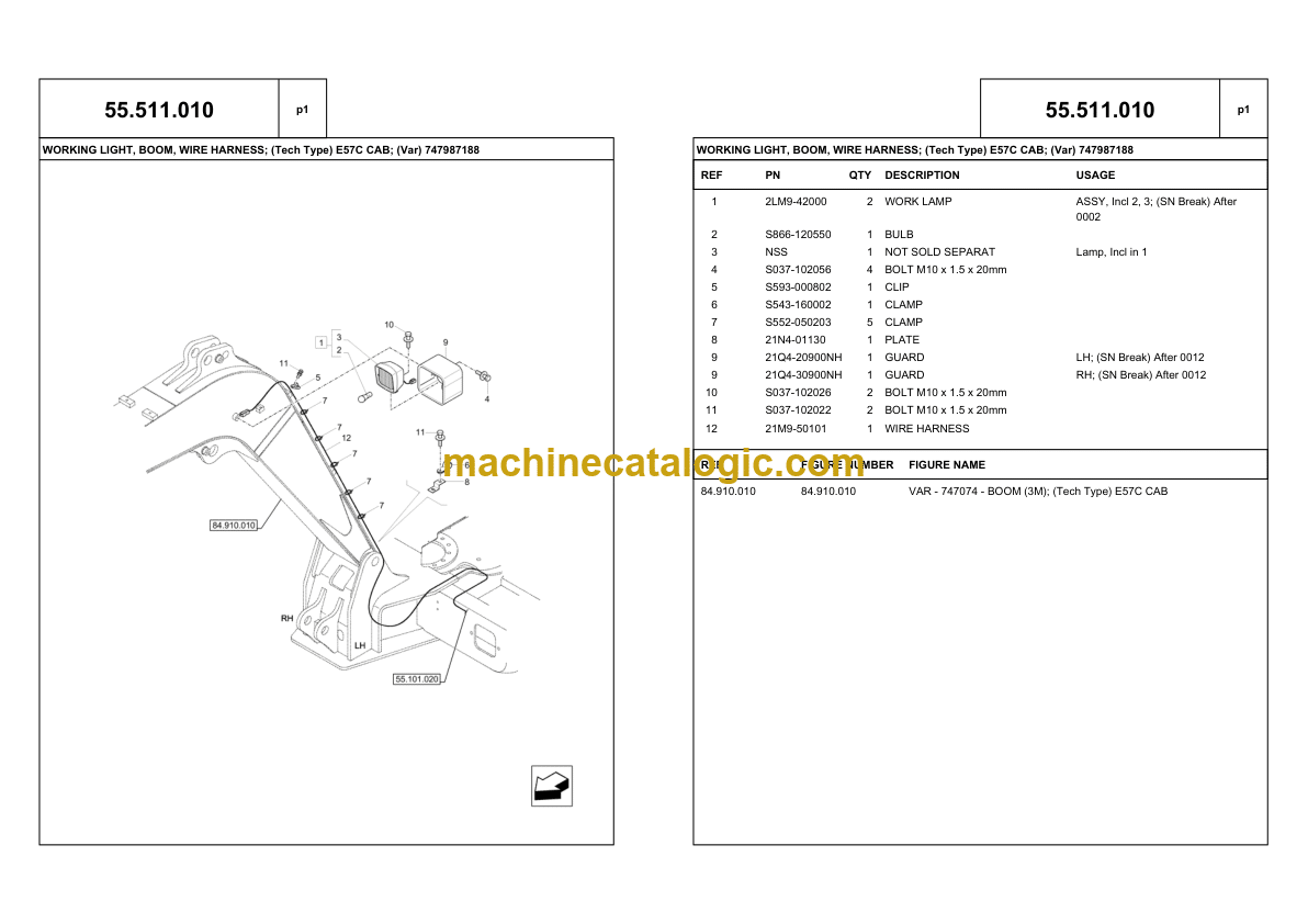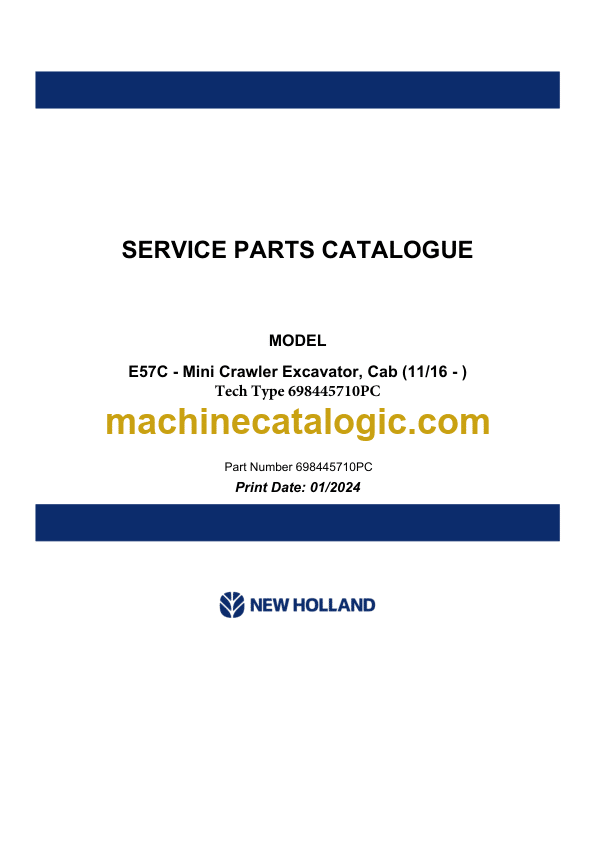 New Holland E57C Mini Crawler Excavator Service Parts Catalogue