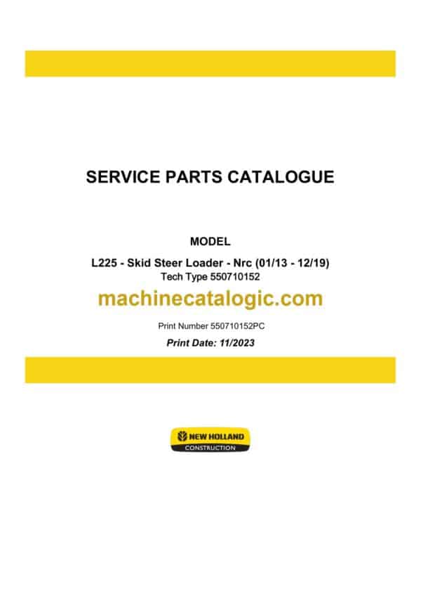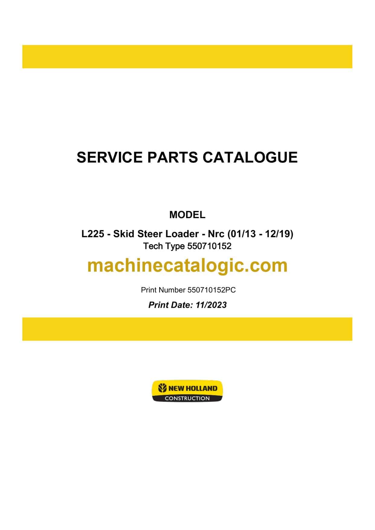 New Holland L225 NRC Skid Steer Loader Service Parts Catalogue