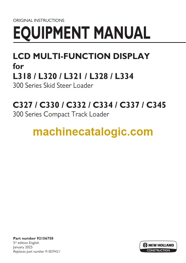 Model: L318, L320, L321, L328, L334 300 Series Skid Steer Loader and C327, C330, C332, C334, C337, C345 300 Series Compact Track Loader