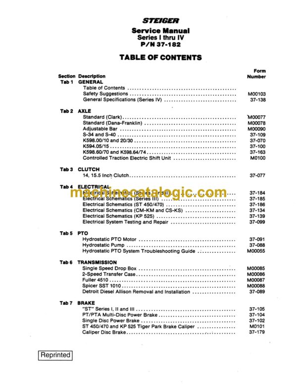 Steiger CM, KM, SM, CS, KS Series Tractor Index: