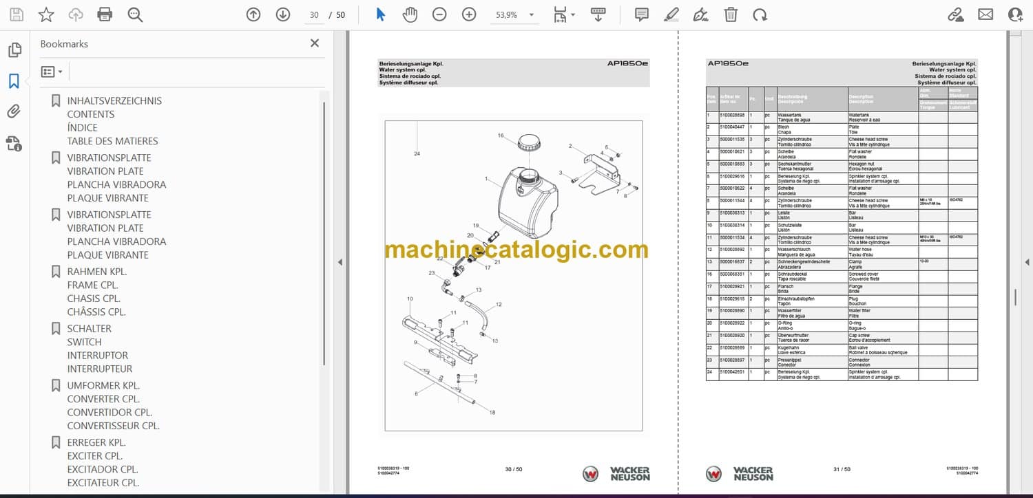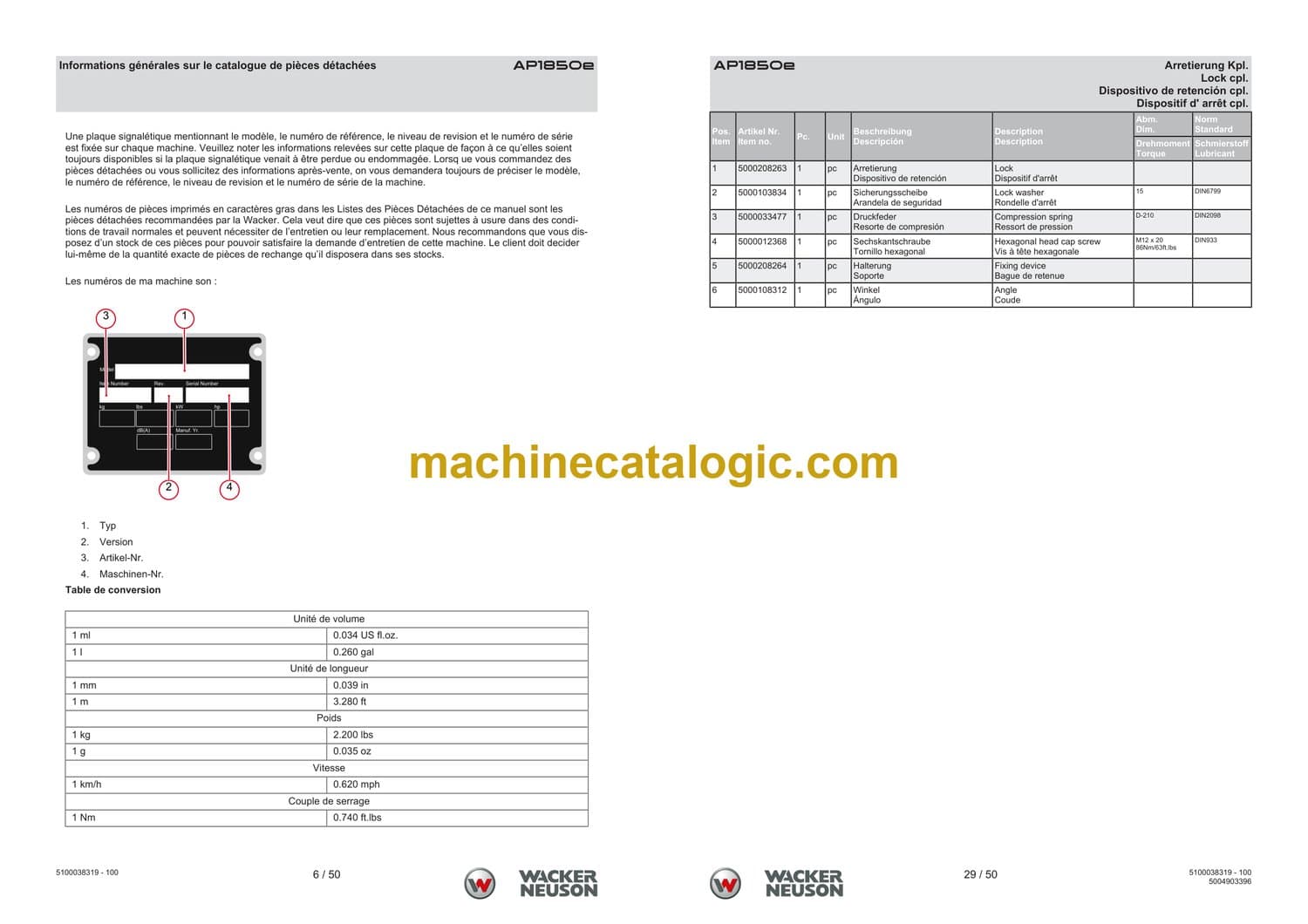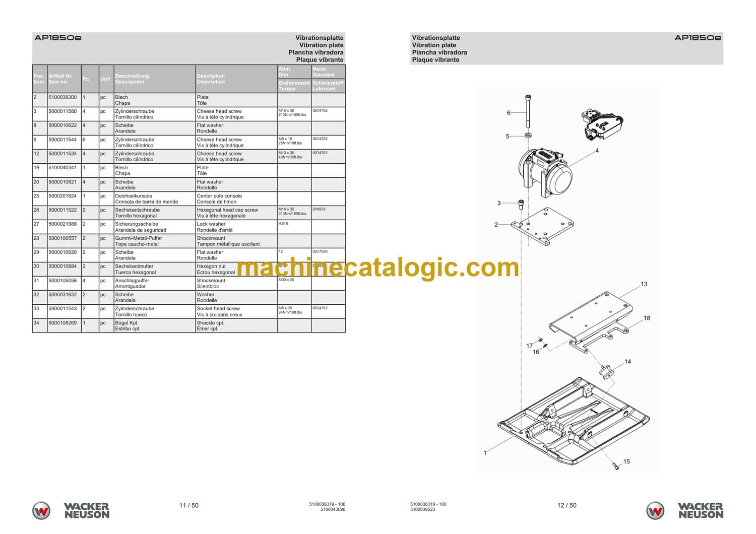 Wacker Neuson AP1850e Vibratory Plates Parts Manual