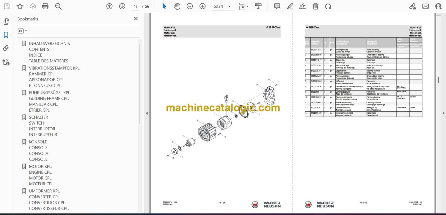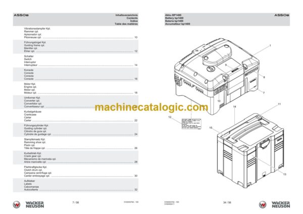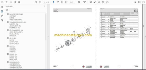 INHALTSVERZEICHNIS CONTENTS ÍNDICE TABLE DES MATIERES VIBRATIONSSTAMPFER KPL. RAMMER CPL. APISONADOR CPL. PILONNEUSE CPL. FÜHRUNGSBÜGEL KPL. GUIDING FRAME CPL. MANILLAR CPL. ÉTRIER CPL. SCHALTER SWITCH INTERRUPTOR INTERRUPTEUR KONSOLE CONSOLE CONSOLA CONSOLE MOTOR KPL. ENGINE CPL. MOTOR CPL. MOTEUR CPL. UMFORMER KPL. CONVERTER CPL. CONVERTIDOR CPL. CONVERTISSEUR CPL. KURBELGEHÄUSE CRANKCASE CÁRTER CARTER FÜHRUNGSZYLINDER KPL. GUIDING CYLINDER CPL. CILINDRO DE GUÍA CPL. CYLINDRE DE GUIDAGE CPL. STAMPFEINSATZ KPL. RAMMING SHOE CPL. PISÓN CPL. TÊTE DE FRAPPE CPL. KURBELTRIEB KPL. CRANK GEAR CPL. MECANISMO DE MANIVELA CPL. ARBRE MANIVELLE CPL. FLIEHKRAFTGLOCKE KPL. CLUTCH DRUM CPL. CAMPANA CENTRÍFUGA CPL. CANTER EMBRAYAGE CPL. AUFKLEBER LABELS CALCOMANIAS AUTOCOLLANTS ZUBEHÖR ACCESSORIES ACCESORIOS ACCESSOIRES