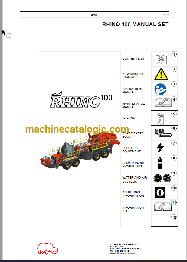 OPERATOR’S MANUAL MAINTENANCE MANUAL ID CARD SPARE PARTS BOOK ELECTRIC EQUIPMENT POWER PACK/ HYDRAULICS WATER AND AIR SYSTEMS ADDITIONAL INFORMATION INFORMATION / CD