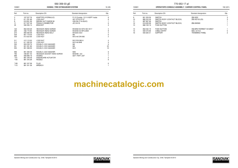 Sandvik DD320-40 Drill Rig Parts Manual (110D17490-1)