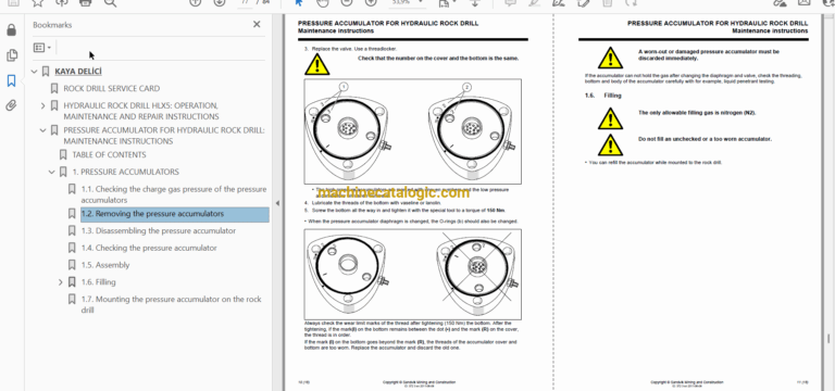 Pressure Accumulator for Hydraulic Rock Drill; Repair Instructions