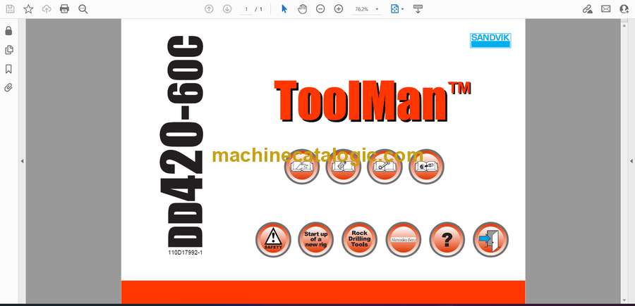 Sandvik DD420-60C Drill Rig Full Documents (Service, Operator, Maintenance Manual and Parts Catalog) [110D17992 JB0133]