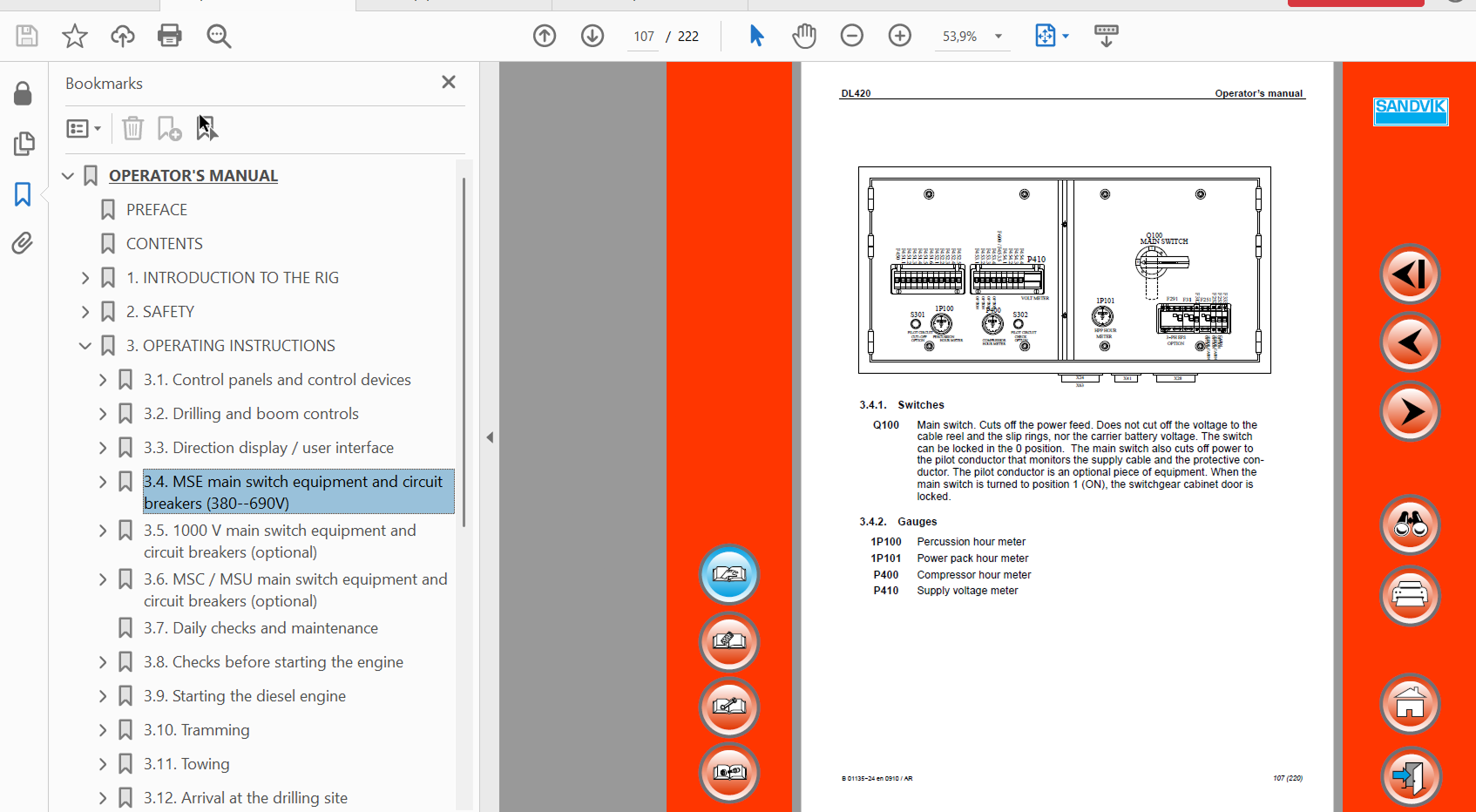 Sandvik DL420-15C Drilling Rig Service, Operator, Parts Manual [110A18069-1]