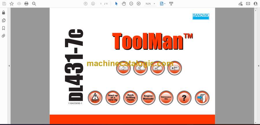 Type of Document: Full Toolman Manual (Service, Operator, Maintenance Manual and Parts Catalog)