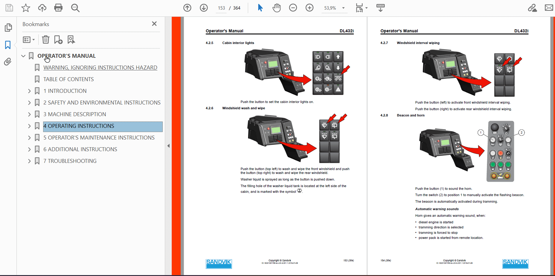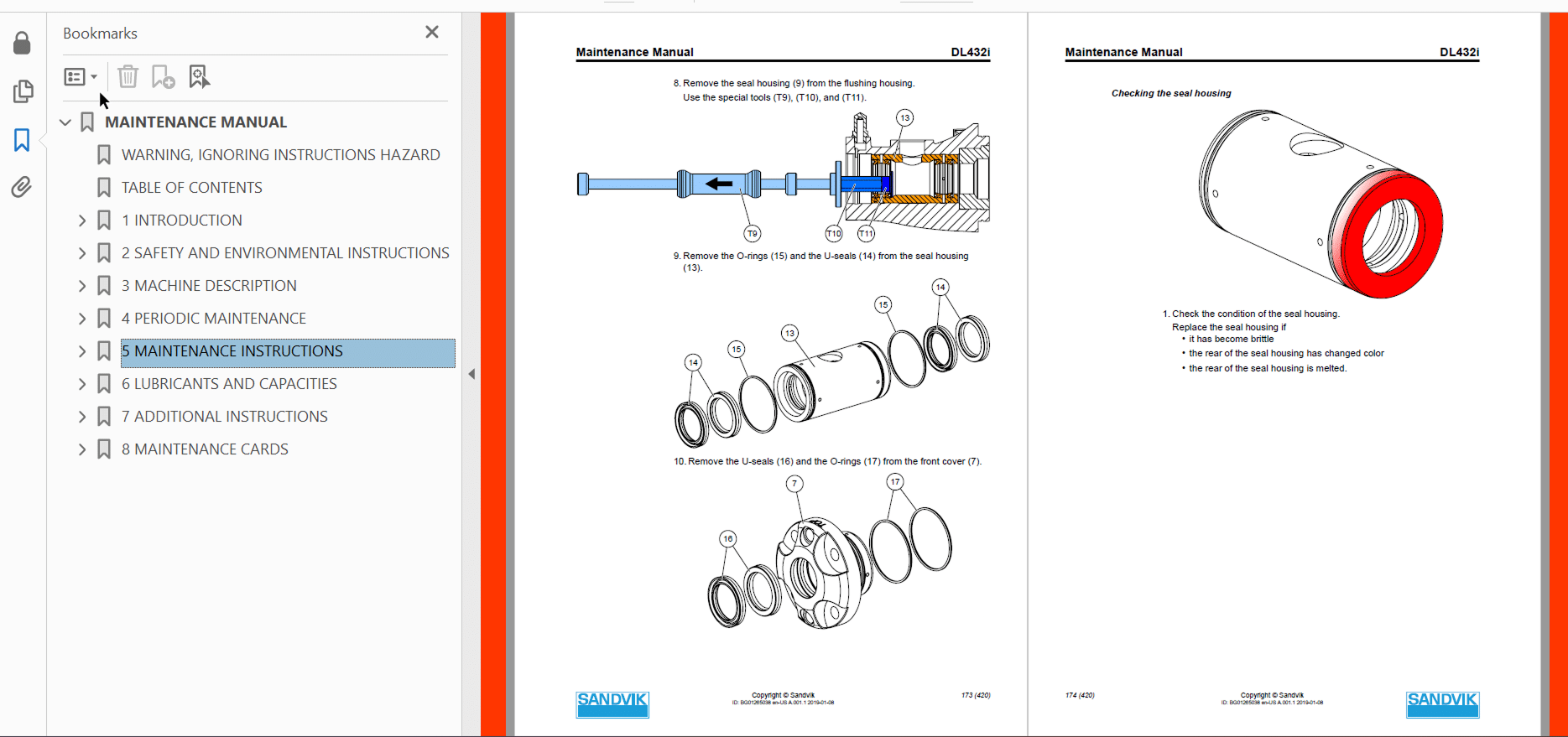 Sandvik DL432i Underground Drill Rig Full Documents (Service, Operator, Maintenance Manual and Parts Catalog) [119A56539-1]