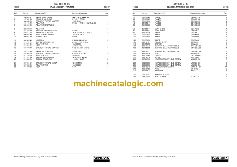 Sandvik DP1500i Drill Rig Parts Manual (113T16795-1)