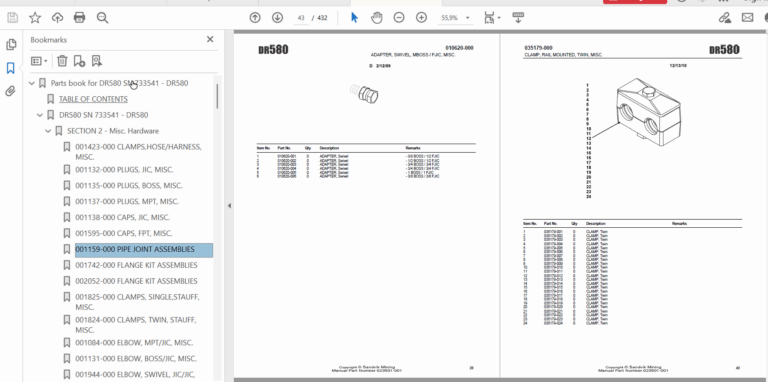 Type of Document: Full Toolman Manual (Service, Operator, Maintenance Manual and Parts Catalog)