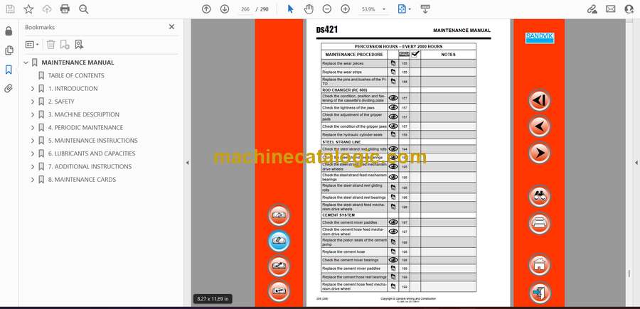 Sandvik DS421 Cable Bolter Full Documents (Service, Operator, Maintenance Manual and Parts Catalog) [111B18138-1]