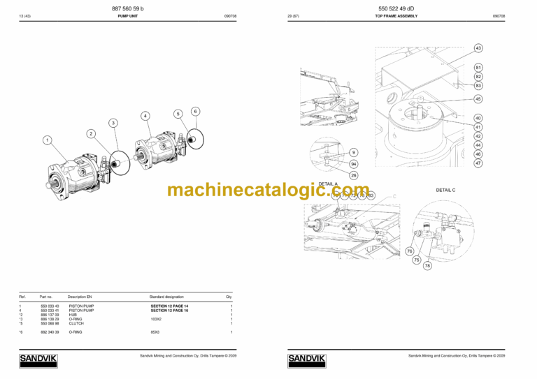 Sandvik DX800 Drill Rig Parts Manual (109T16056-1)