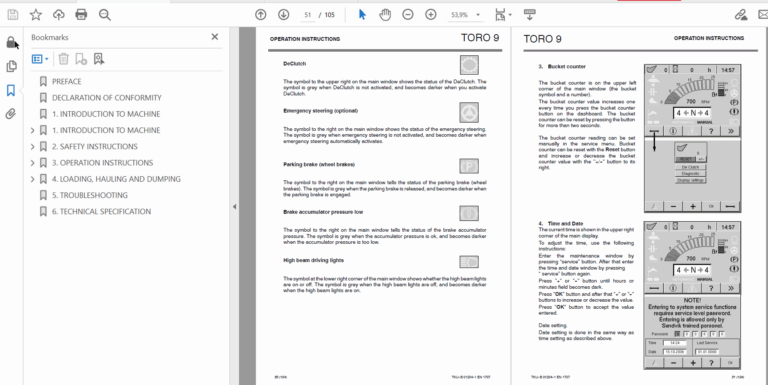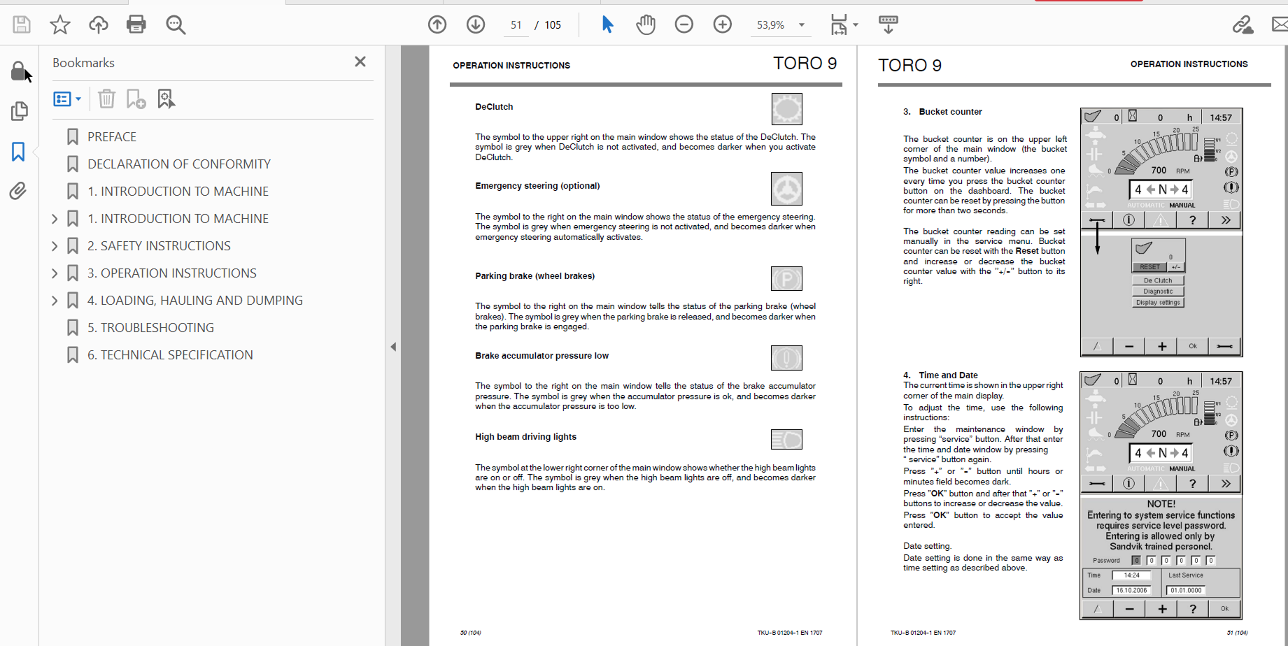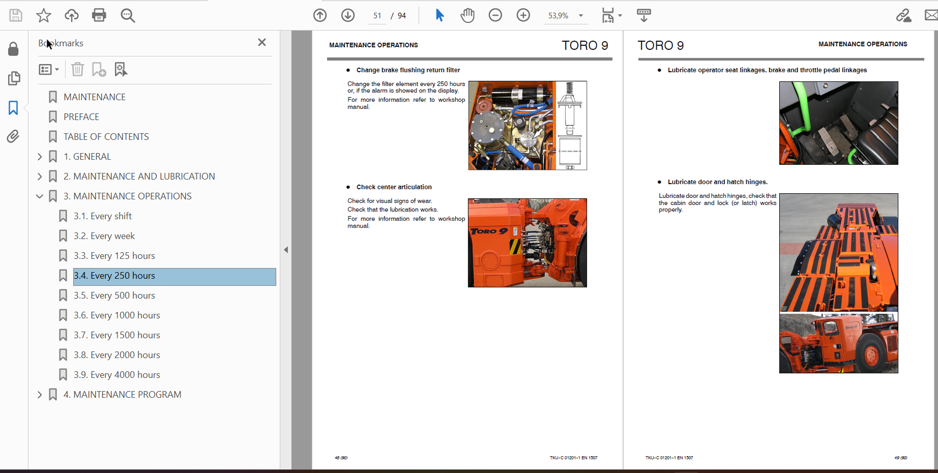 Sandvik LH514 Underground Loader Operator, Maintenance, Workshop Manual Index:
