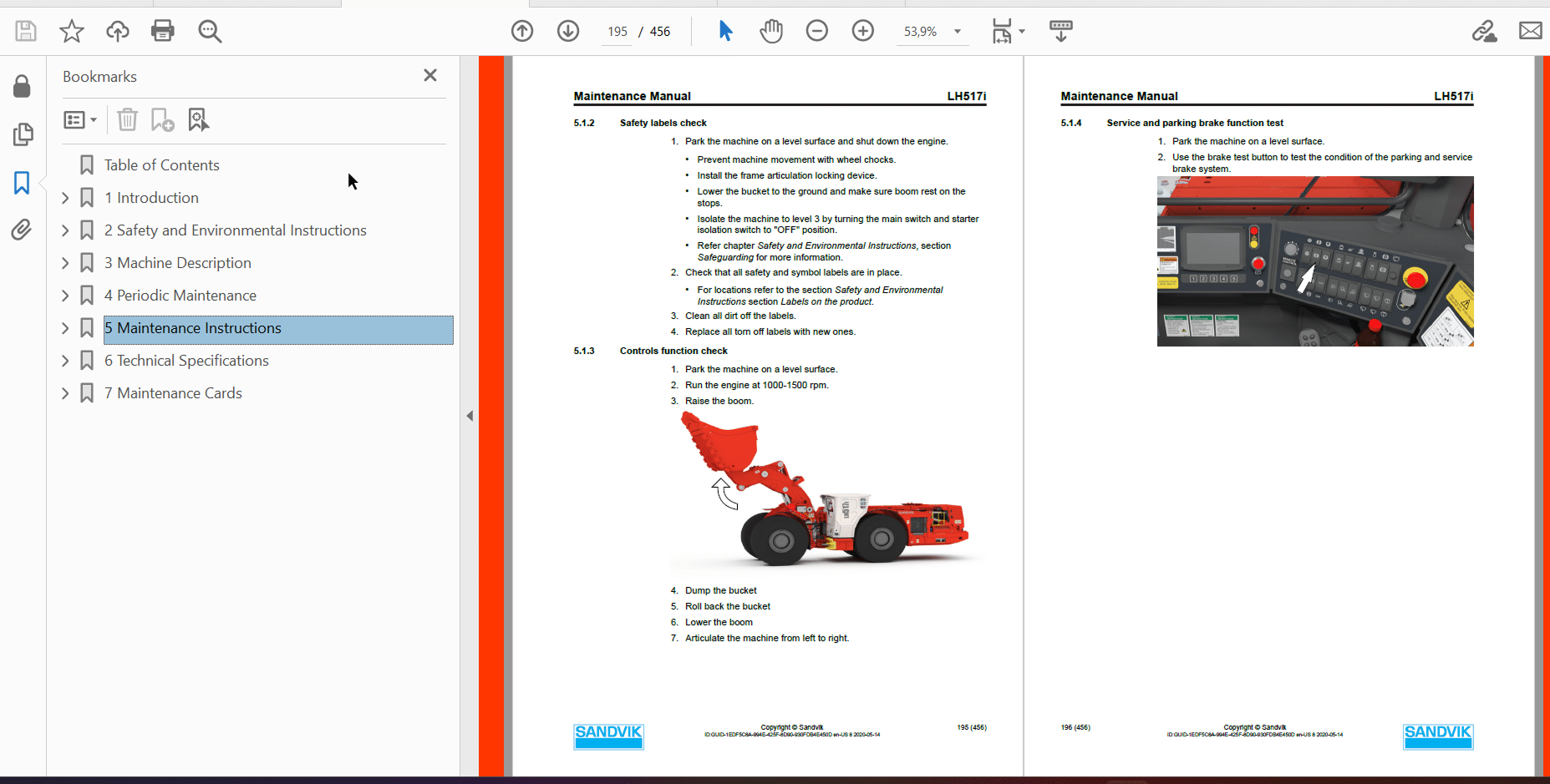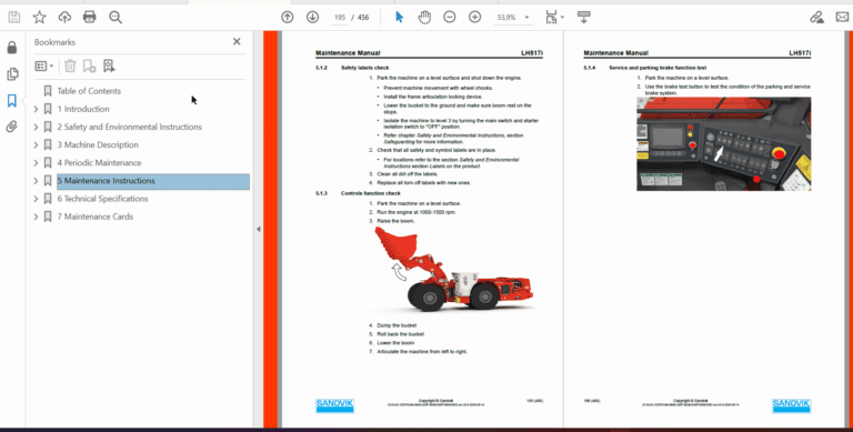 Sandvik LH517i Underground Loader Full Documents (Service, Operator, Maintenance Manual and Parts Catalog) [L017D826]