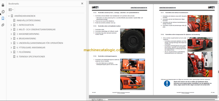 Sandvik LH621 Mining Loader Operator’s and Maintenance Manual (L521D195 Swedish)