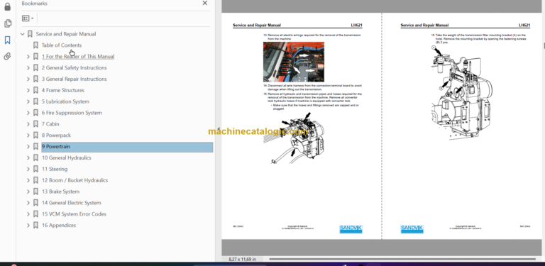 Sandvik LH621 Mining Loader Service and Parts Manual (L821D397)