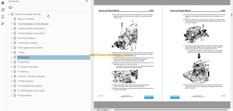 Sandvik LH621 Mining Loader Service and Parts Manual (L821D448)