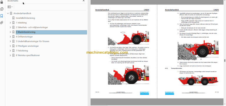 Sandvik LH621i Mining Loader Operator’s and Maintenance Manual (L621DAMA0A0547 Swedish)