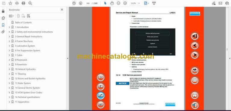 Sandvik LH621i Underground Loader Full Documents (Service, Operator, Maintenance Manual and Parts Catalog) [L021D568]