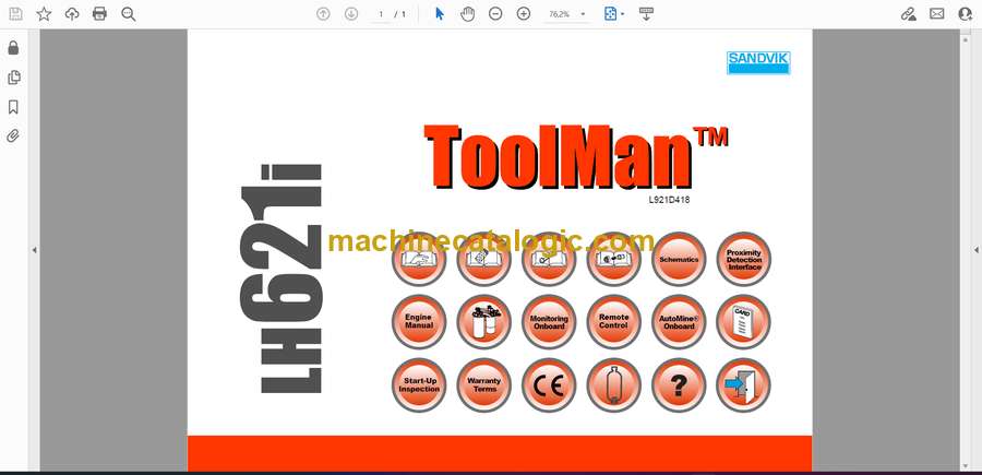 Sandvik LH621i Underground Loader Full Documents (Service, Operator, Maintenance Manual and Parts Catalog) [L921D418]
