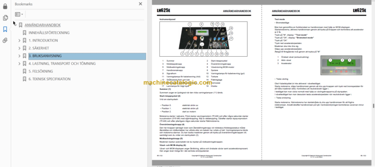 Sandvik LH625E Mining Loader Operator’s and Maintenance Manual (L325E029 Swedish)