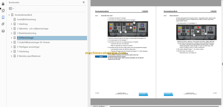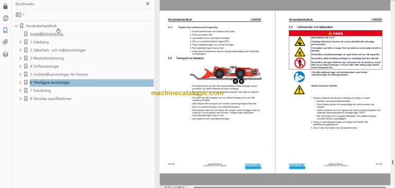 Sandvik LH625iE Mining Loader Operator’s and Maintenance Manual (L925E101 Swedish)